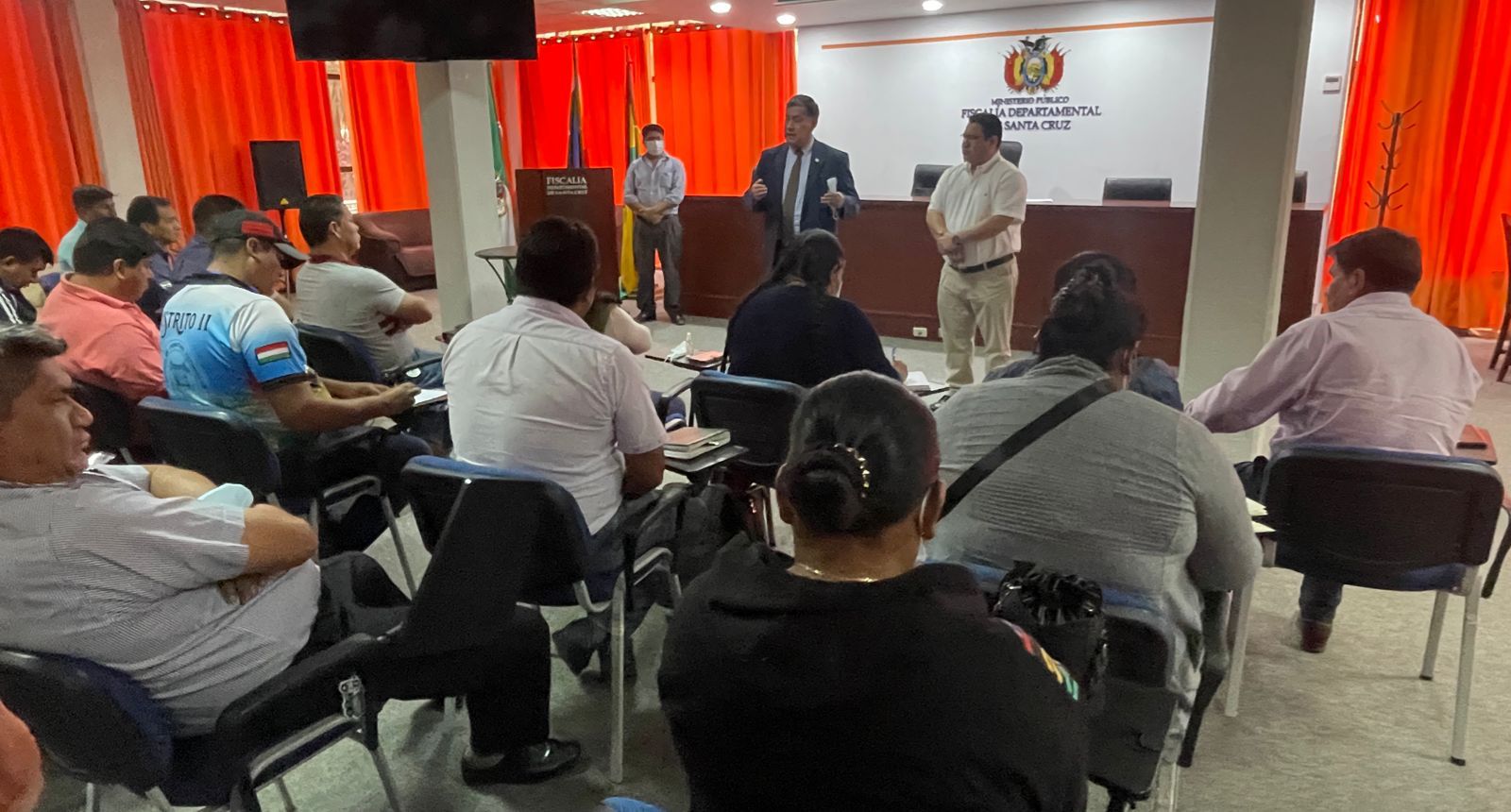 La reunión se realizó en el auditorio del edificio central de la Fiscalía Departamental, con la presencia del Alcalde Municipal de Yapacaní, seis concejales, representantes del sector de transporte, representantes de los interculturales y de los distritos, además de otros sectores.