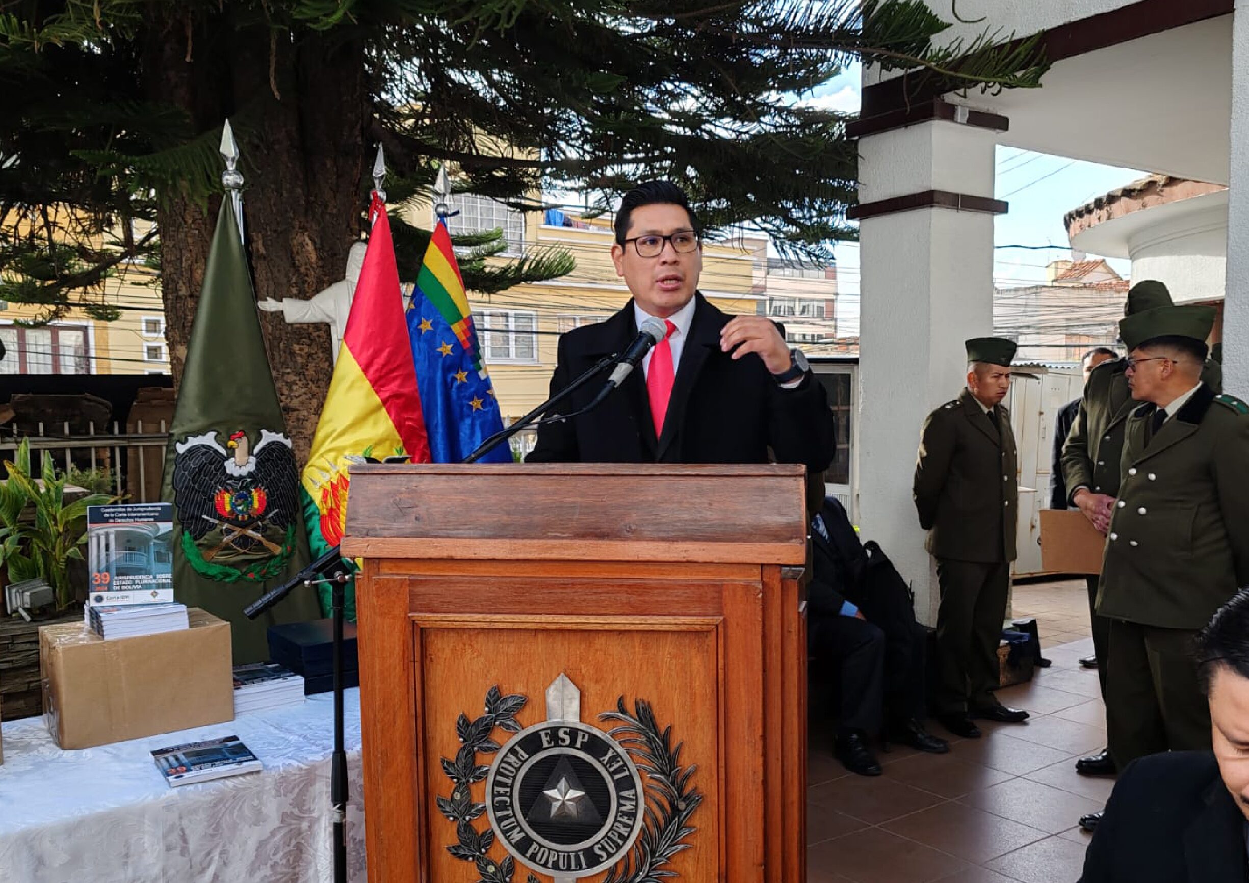 LA PAZ 06 OCT. (NÓMADA NEWS).- El Procurador Ricardo Condori Tola, participó del “Acto de entrega del Cuadernillo de Jurisprudencia de la Corte Interamericana de Derechos Humanos (Corte IDH)”, desarrollado en la ciudad de La Paz con la presencia de autoridades de la Procuraduría General del Estado (PGE), de la Universidad Policial (UNIPOL) y más de 200 estudiantes.
