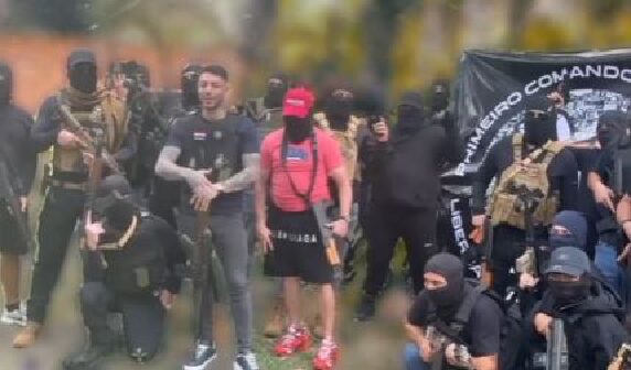 El video, muestra a Marset junto a más de veinte encapuchados armados y con un banner donde dice Primeiro Comando da Capital (PCC). En sus declaraciones lanza amenazas directas contra su exsocio, apodado El Colla, y contra la Policía Boliviana.